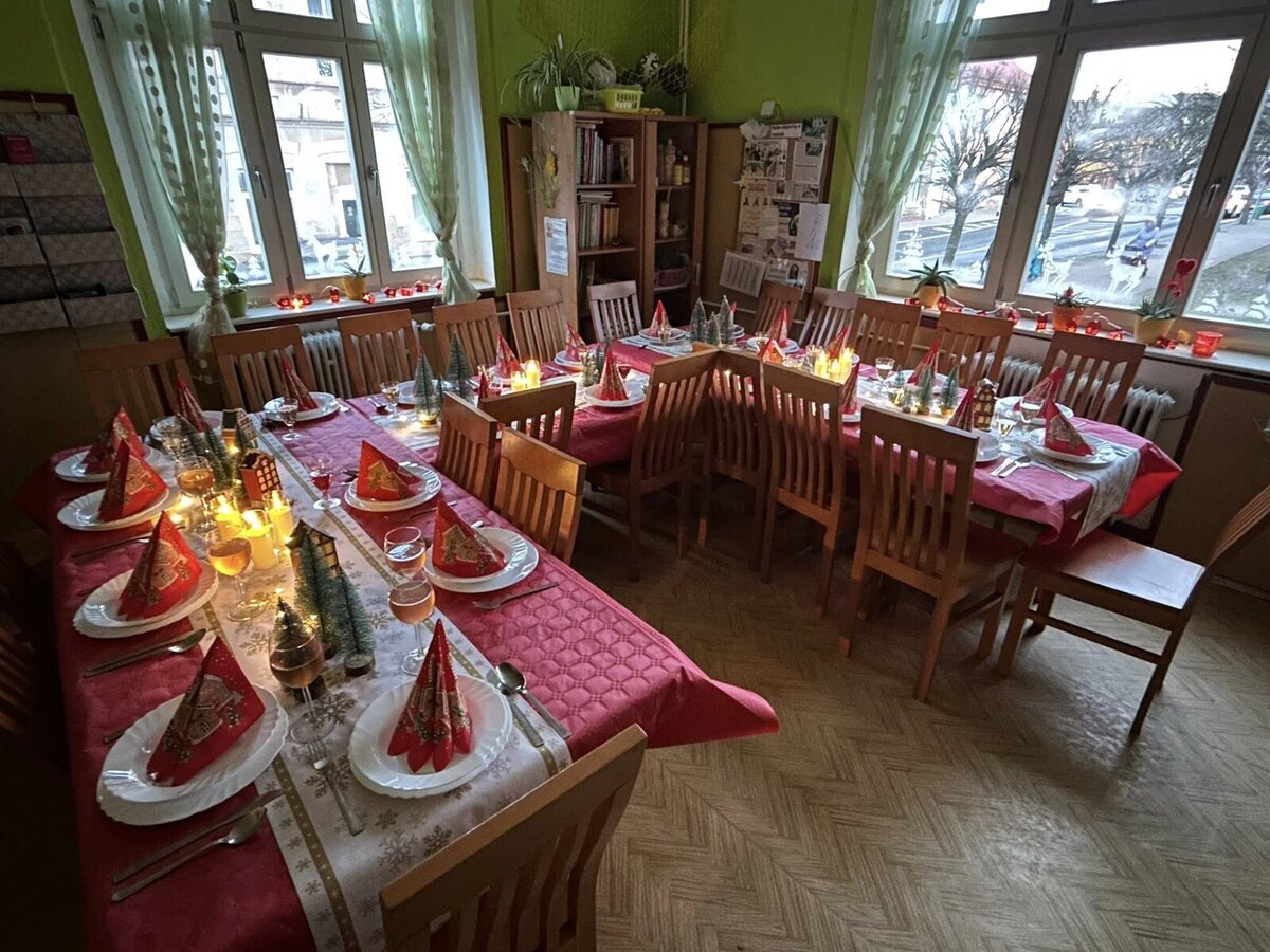 Klienti azylového domu si společně připravili slavnostní štědrovečerní večeři, při které nechyběl řízek, klobása ani bramborový salát. U jednoho stolu sdíleli nejen jídlo, ale i vánoční pohodu a každý si pod stromečkem našel svůj dárek.